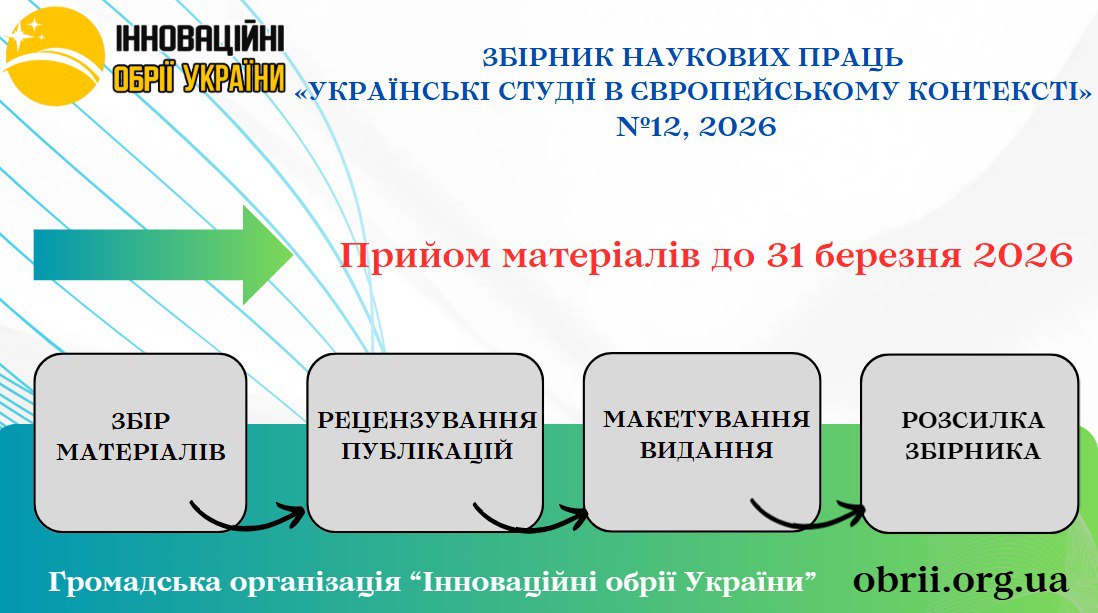 Шановні колеги, запрошуємо до публікації! Громадська організація «Інноваційні обрії України» має честь запросити науковців, дослідників та викладачів долучитися до формування чергового випуску збірника наукових праць «Українські студії в європейському контексті» (№ 12, 2026 року). Наше наукове періодичне видання є платформою для обміну результатами досліджень у філологічн...