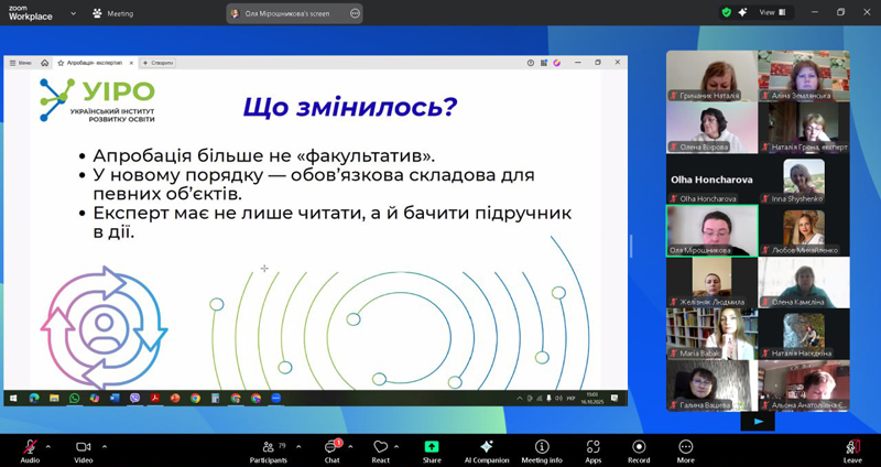 17 жовтня 2025 р. відбулося установче засідання Українського інституту розвитку освіти (УІРО) з питань апробації шкільних підручників, поданих на отримання грифу Міністерства освіти й науки України для використання в закладах загальної середньої освіти. Участь у засідання взяла й членкиня ГО «Інноваційні обрії Укра...