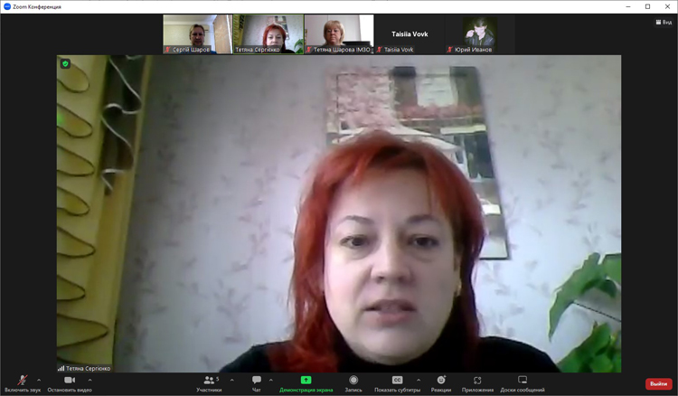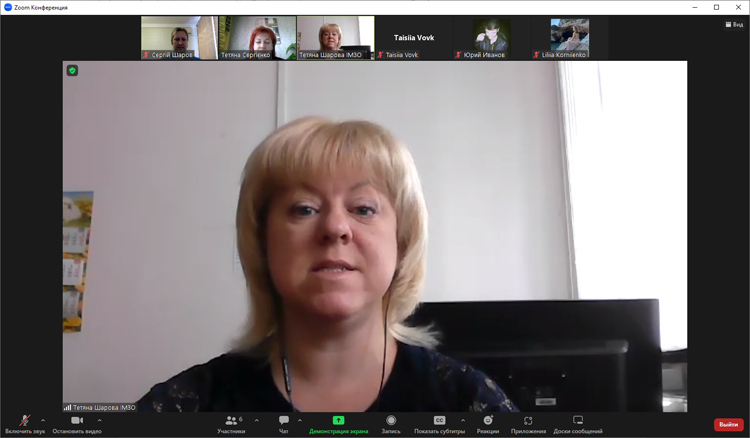 Шарова Тетяна Михайлівна, доктор філологічних наук, професор, головний науковий співробітник відділу роботи з обдарованою молоддю Державної наукової установи «Інститут модернізації змісту освіти», голова Правління Громадської організації «Інноваційні обрії України» під час зустрічі презентувала власне бачення розвитку освітньої траєкторії здобувачів освіти спеціальності 291 «Міжнародні відносини, суспільні комунікації та регіональні студії», акцентуючи увагу на постійній комунікації, долученні до різноманітних інтелектуальних змагань професійного розвитку.