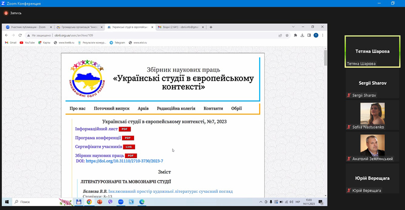 14 листопада 2023 року в режимі онлайн членами Громадської організації було ініційовано та проведено брифінг за результатами Всеукраїнської науково-практичної заочної конференції «Українські студії в європейському контексті».