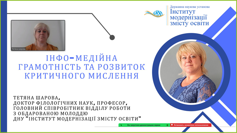 27 березня 2024 року відбувся онлайн-ОЗОН-міст «ВІЛЬНІ ДІАЛОГИ В УМОВАХ ОСОБИСТІСНО ЗОРІЄНТОВАНОГО НАВЧАННЯ». До заходу була запрошена доктор філологічних наук, професор Тетяна ШАРОВА, яка мала можливість виступити із вітальним словом та надихнути вчителів української мови та літератури на нові творчі горизонти. «Про...